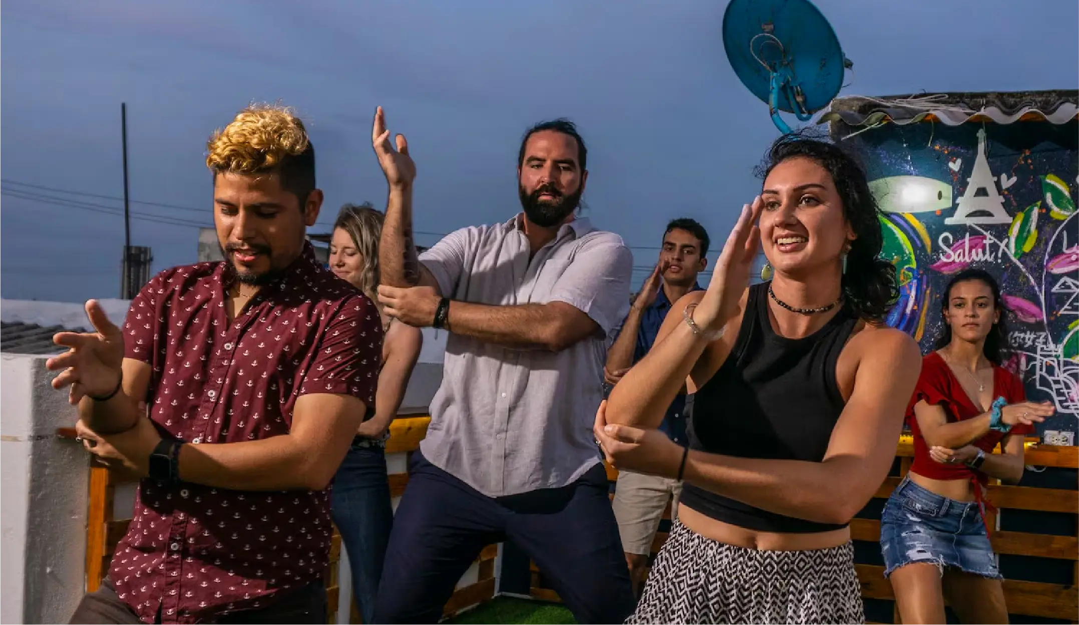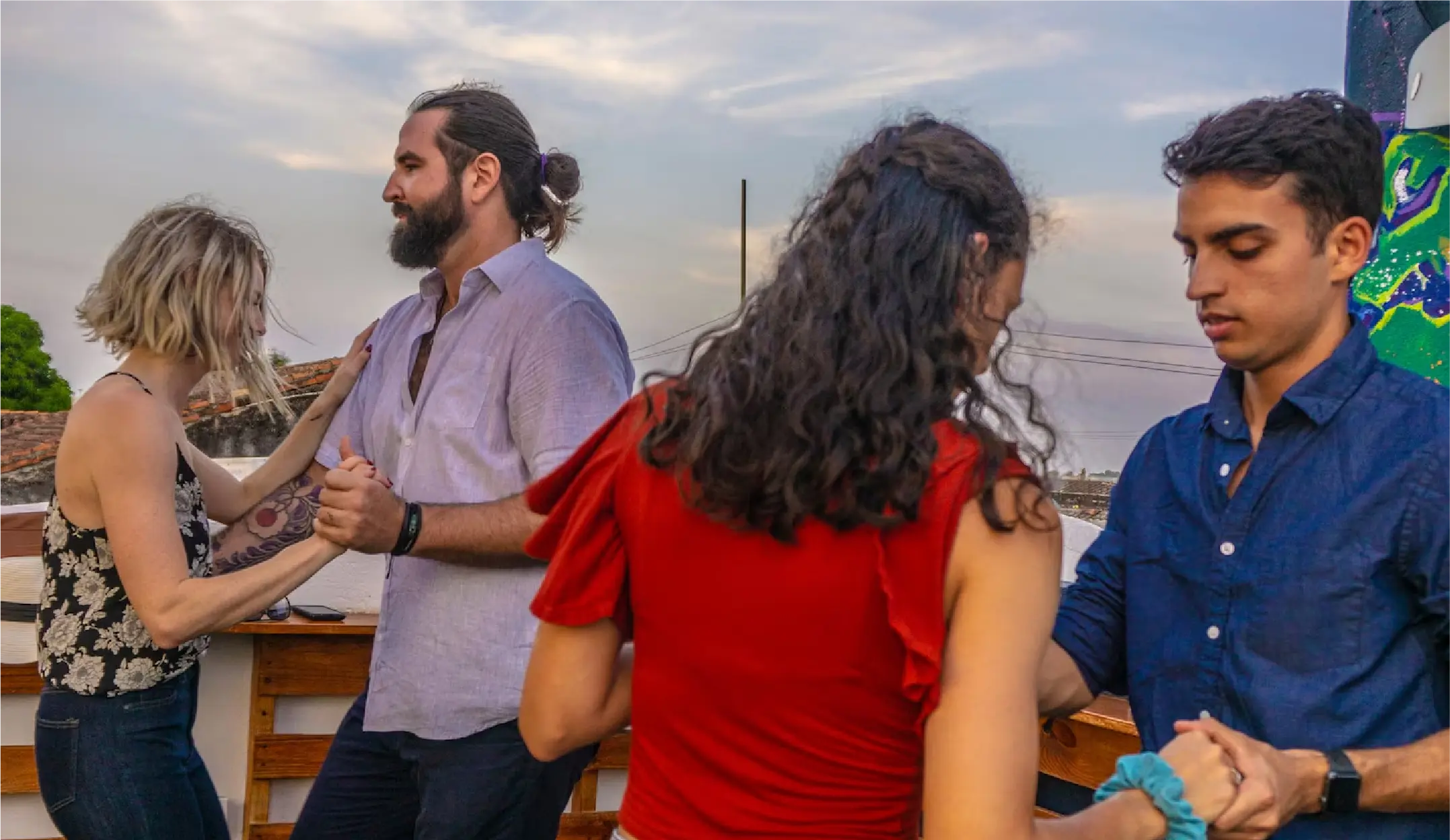 Durante 2:30 horas estaremos en nuestra azotea secreta y privada en el barrio de Getsemaní en el casco antiguo de Cartagena. Aprenderemos los ritmos latinos...